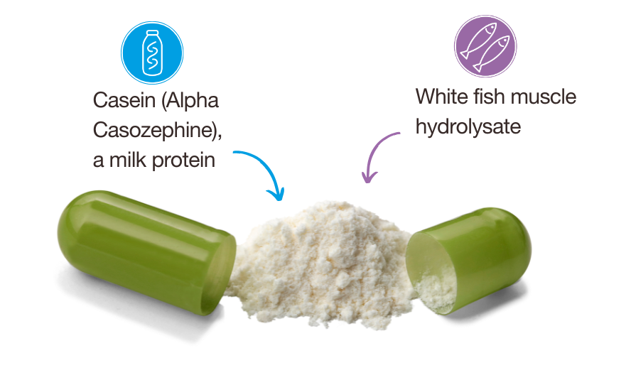 Zylkene Plus contains a dual action formula of a natural milk protein and white fish muscle to help pets with long term or recurring challenging situations.